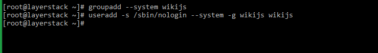 # useradd -s /sbin/nologin --system -g wikijs wikijs