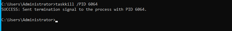 The below example kills/terminates the process with ID 6064 and the output confirms once the process has been killed: